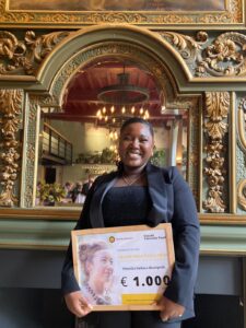 The Hélène Phoa Gender Studies Research Thesis Prize has been awarded to Priscilla Akomprah during the diploma Graduation Ceremony of the Research Master Gender Studies on 13 November to her thesis titled Marriage, Faith, and Harm: A Feminist Analysis of Domestic Violence in Ghana. This thesis “explores how bride price (marriage) and Christian religious teachings intersect with domestic violence in Ghana, using a Ghanaian decolonial feminist standpoint. It centres the voices of survivors as co-creators and it treats their lived experiences as critical knowledge. Drawing on eight in-depth interviews with individuals who span across domestic violence survivors, domestic violence support workers, law enforcers and church leaders, the study examines how marriage is conceptualized, how religious teachings shape understandings of domestic violence in unions, and how survivors navigate harm when these systems overlap.”